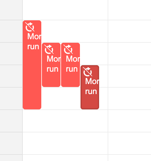 Google Calendar's approach seems to rely on a fixed font size and text height, which we don't have the luxury to assume lightly. And even their overlapping approach doesn't work well if the appointment titles become longer or there is not enough horizontal space: