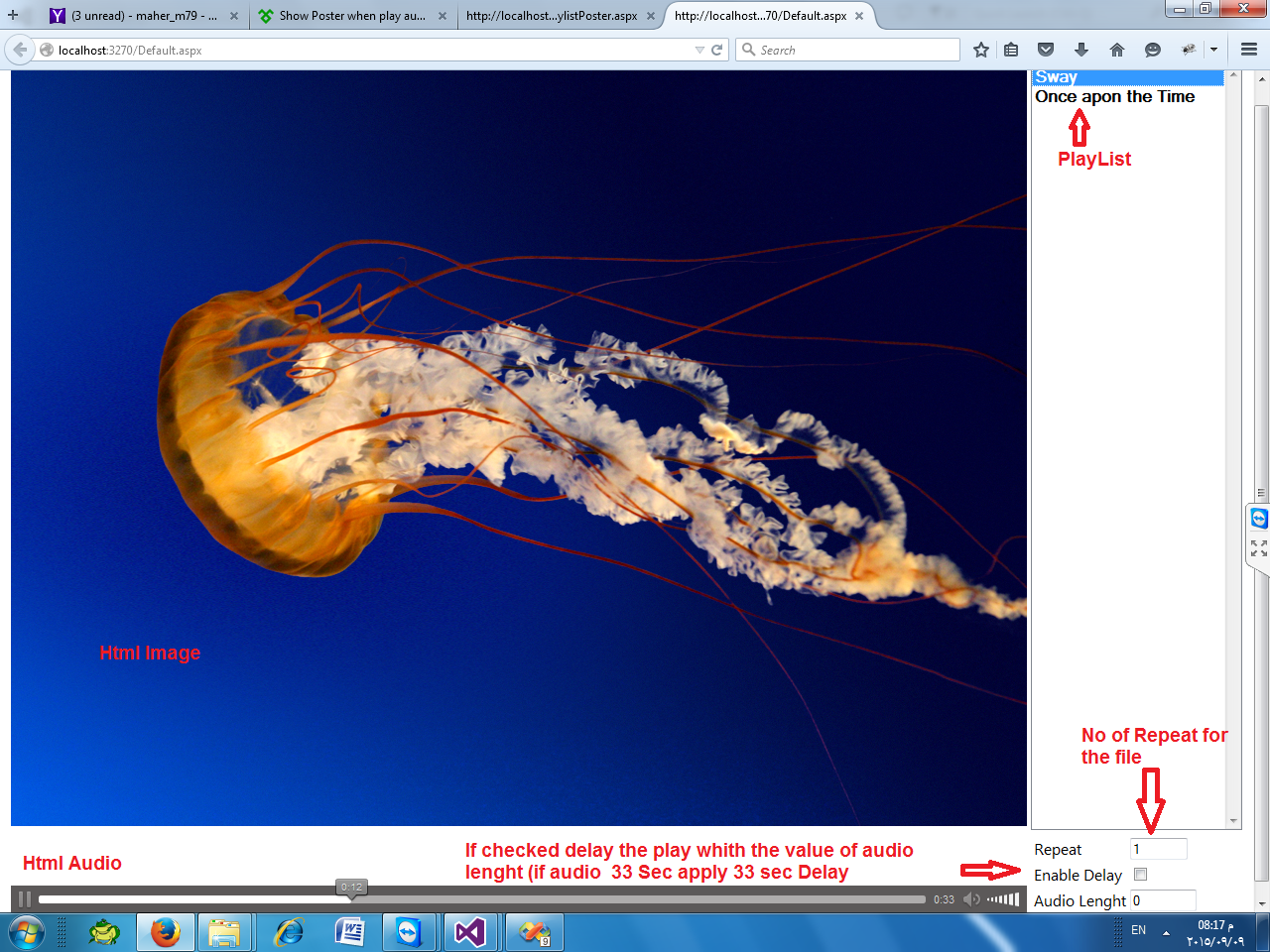 i need ​the player ​to show the image (as large as possible) and play the sound