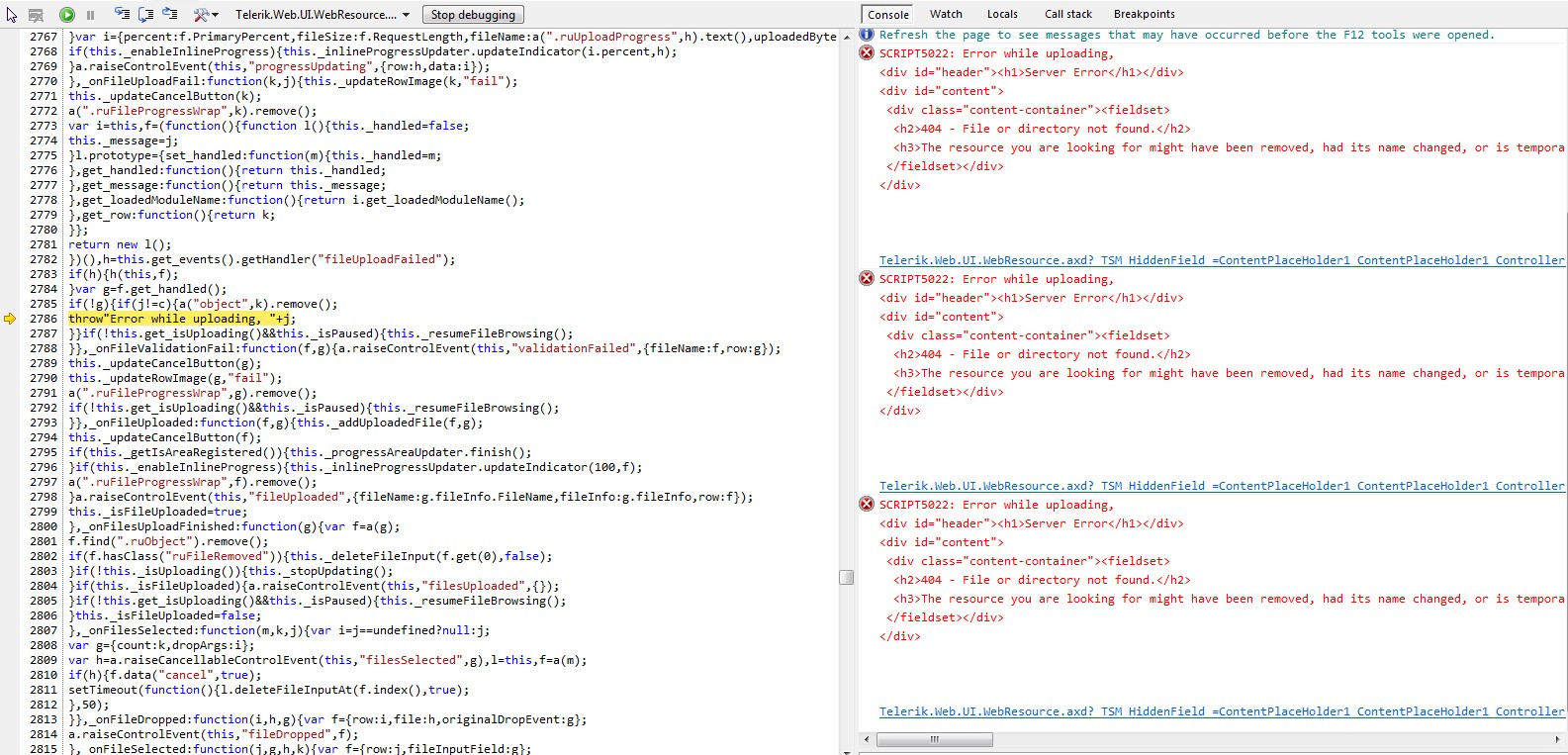 Server : While browsing using IE, inline progress does not show when uploading 50MB and 50++MB and validation is not working (it will not passed through OnClientValidationFailed) and error prompted (see attached files). But when browsing smaller files like 20+MB, inline progess shows