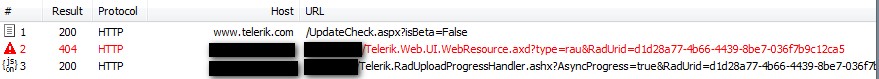 I already put these lines in web.config: In IE developer tool, I saw that it's error 404 for http://xxxx:yyyy/aaa/bbb/Telerik.Web.UI.WebResource.axd?type=rau&RadUrid=47695dcb-cba0-4fca-b37e-7c5a54bacf610