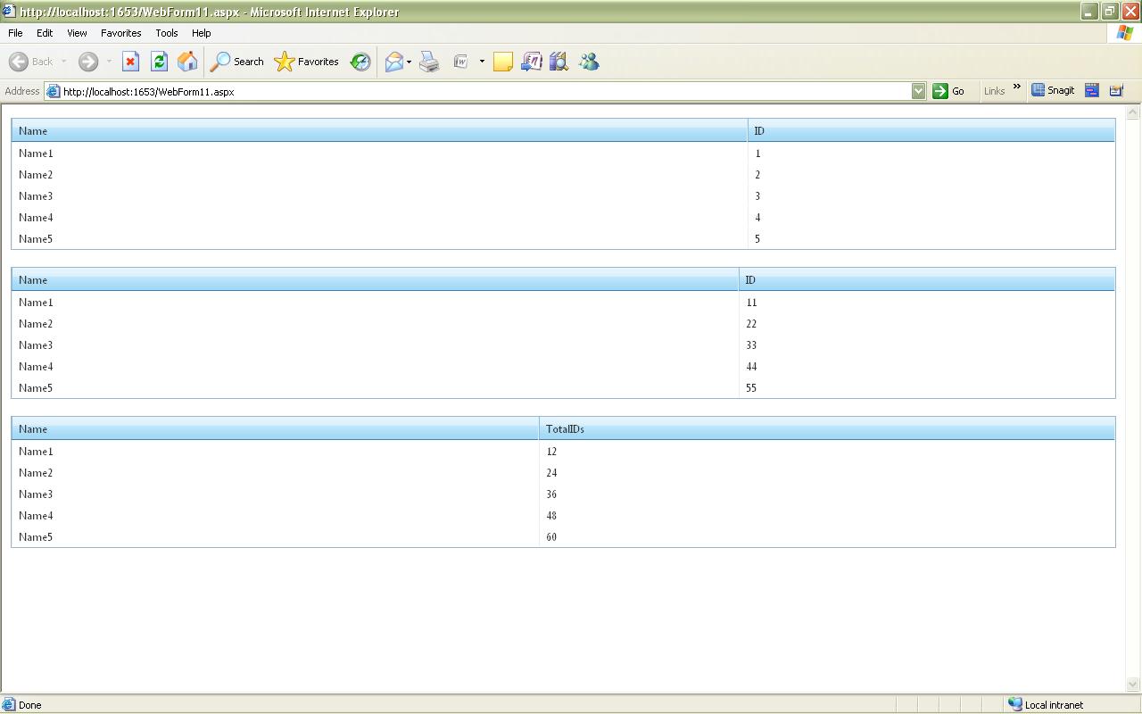 I have two grid that i fill with the results of two different SQL queries, but with the same numbers and types of collumns. It's possible to show the totals of all elements from the two grids but only in the second grid.