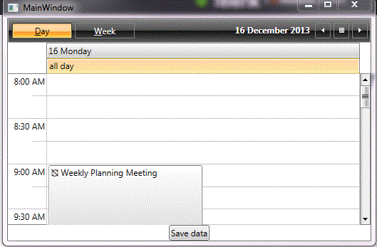 I have a problem where the All day area is missing in the scheduleview when I'm using Group Descriptions. I took your WithDb example and added ShowAllDayArea = "True" to the DayViewDefinition. If I run it with the GroupDescriptionSource, I don't see the AllDay area. If I comment out the GroupDescriptionSource, it shows up. Is this by design? I'd really like to be able to group and have an all day slot. I've attached pictures of what it looks like with the GroupDescriptionSource and without.