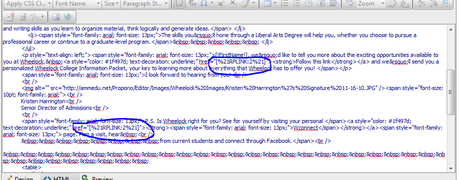 The actual issues is ,the word href="[!RPLINK:2!]" is displaying as href="[%21RPLINK:2%21]".