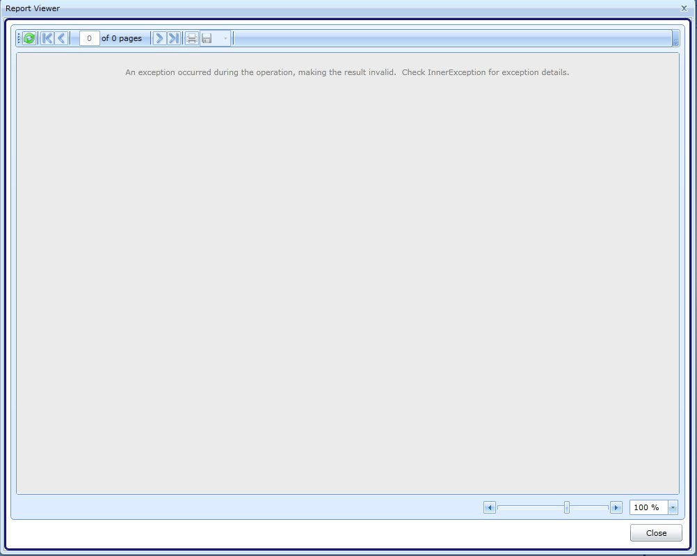 And I've added the Silverlight Report Viewer to a RadWindow. I open the RadWindow in my application, and you can see the Report Viewer try to load the report, but all I get is the exception text as shown in the attachment.