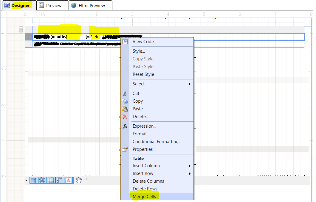 I have my table of data, but above my table, I want to add two rows that will contain the report title, as well as the date rendered information. This information extends beyond what would fit into just one cell, so I'd like to merge the adjacent cells so everything is visible. I don't want to use a header for this information.
