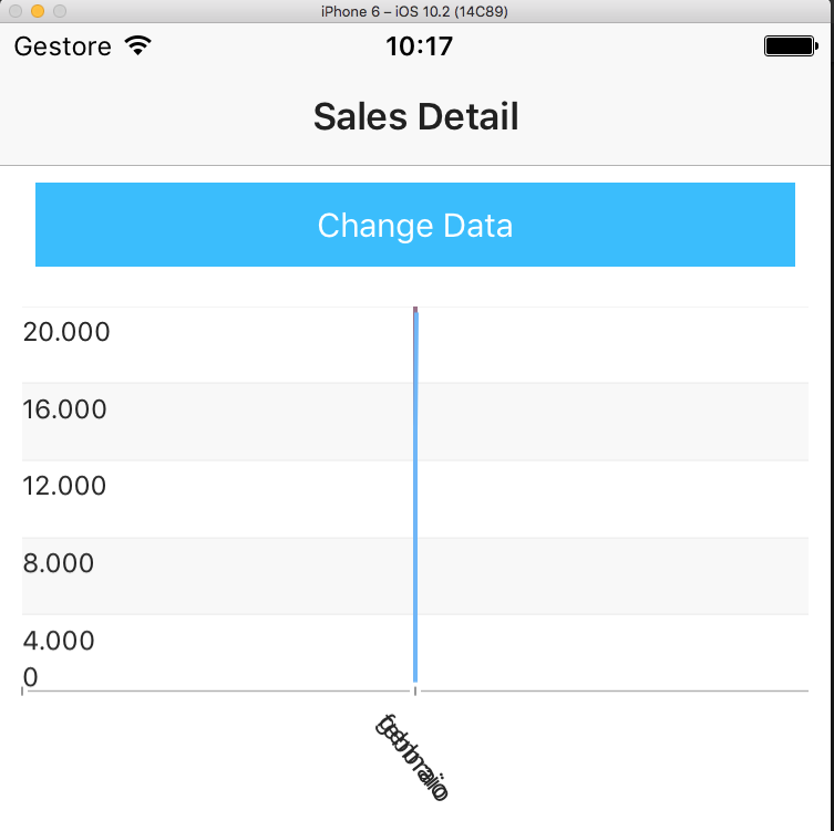import { Injectable } from "@angular/core";export class DataGraph { constructor(public date: Date, public amount: number, public label: string, public timestamp: number) { }}@Injectable()export class DataService { getCategoricalSource(): DataGraph[] { return [ { date: new Date("2017-05-08"), amount: 724.5, label: "05-08", timestamp: 1494201600000 }, { date: new Date("2017-05-09"), amount: 282.6, label: "05-09", timestamp: 1494288000000 }, { date: new Date("2017-05-10"), amount: 478.9, label: "05-10", timestamp: 1494374400000 }, { date: new Date("2017-05-11"), amount: 206.7, label: "05-11", timestamp: 1494460800000 }, { date: new Date("2017-05-12"), amount: 421.6, label: "05-12", timestamp: 1494547200000 }, { date: new Date("2017-05-13"), amount: 1102.3, label: "05-13", timestamp: 1494633600000 }, { date: new Date("2017-05-14"), amount: 346.2, label: "05-14", timestamp: 1494720000000 }, { date: new Date("2017-05-15"), amount: 610.8, label: "05-15", timestamp: 1494806400000 }, { date: new Date("2017-05-18"), amount: 0, label: "05-18", timestamp: 1495065600000 }, { date: new Date("2017-05-19"), amount: 0, label: "05-19", timestamp: 1495152000000 }, { date: new Date("2017-05-20"), amount: 0, label: "05-20", timestamp: 1495238400000 }, { date: new Date("2017-05-21"), amount: 0, label: "05-21", timestamp: 1495324800000 } ]; }}I have still logged an issue regarding the discrepancy in the behaviour of DateTimeCategoricalAxis on Android and iOS as it works with strings on Android but with Dates only on iOS.