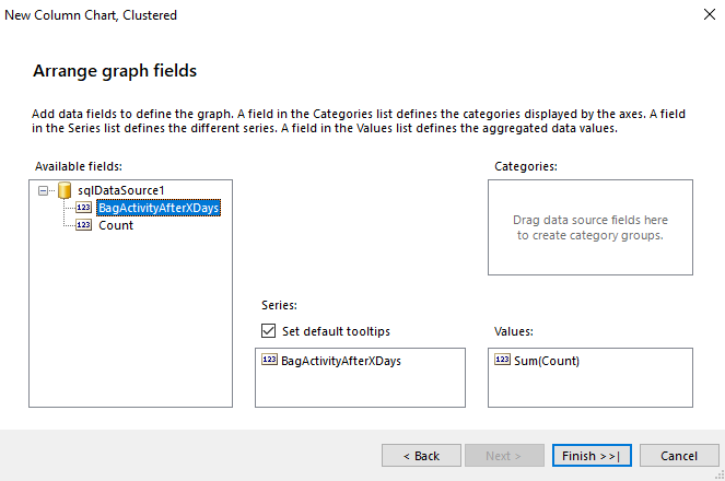 I have a ridiculously simple graph I want to build. The data source works fine, and returns 2 columns: a "bin" (number from 0 to N) and a "count". So the data looks like this: