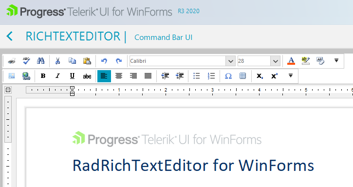 Alternatively, to the command bar, you can use a RichTextEditorRibbonBar: https://docs.telerik.com/devtools/winforms/controls/richtexteditor/ui-for-applying-rich-text-formatting/ribbon-ui. The control is already configured and it comes with built-in icons. In the latest release, R3 2020, we changed the icons with vector images so that they scale flawlessly on High DPI.