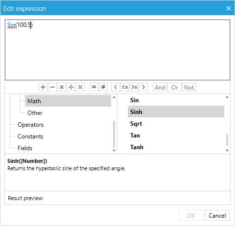 why I input Sin(100.5),the ExpressionEditor could not show the result?