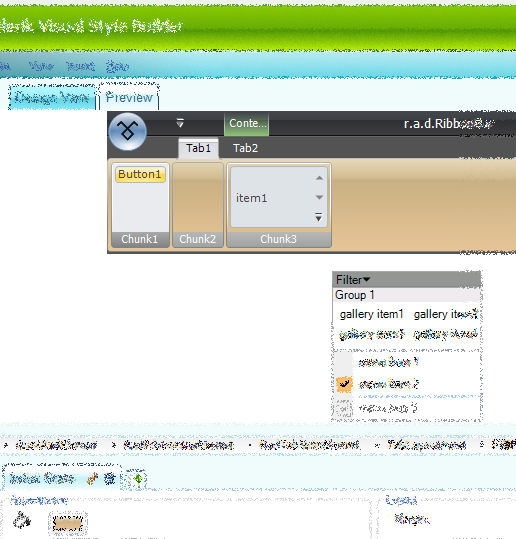 - Open Visual Style Builder (VSB) and load the RadRibbonBar control. Create a new or modify an existing theme. Give the theme a name and save to a file. This might also be your custom theme you had already created. (see VSBMenu1.png)
