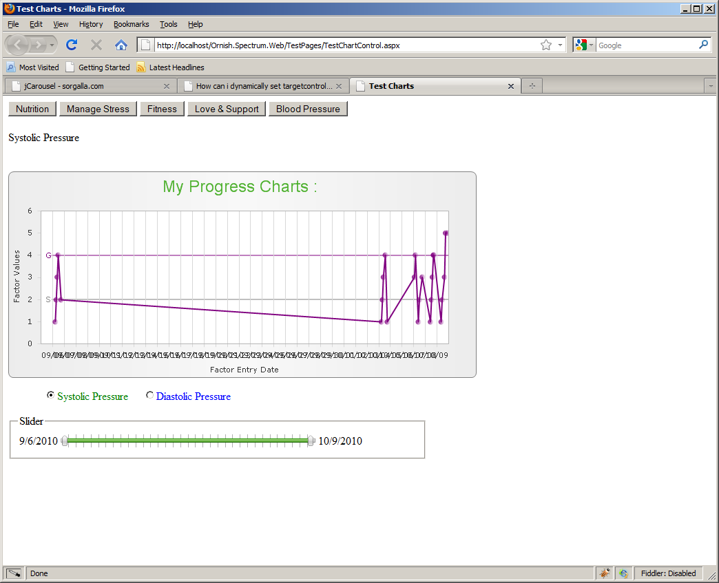 I would like to know if there is any way to skip the plotting of graph for missing data. My x-axis is of shortdate and y-axis is numeric. The values on the x-axis range from 9/1 to 10/9. my step value on x-axis is 1 day so it plots 1 gridline for each point(1 day). Now, my dataset does not have any items with values for certain dates but it still gets plotted on the x-axis because of the min and max values given to x=axis. Is there any way to suppress the plotting of this x-axis label, if the data set doesn't contain the data? Also, the labels overlap. The date range is 9/5 - 10/9 Attaching chart for your ref.