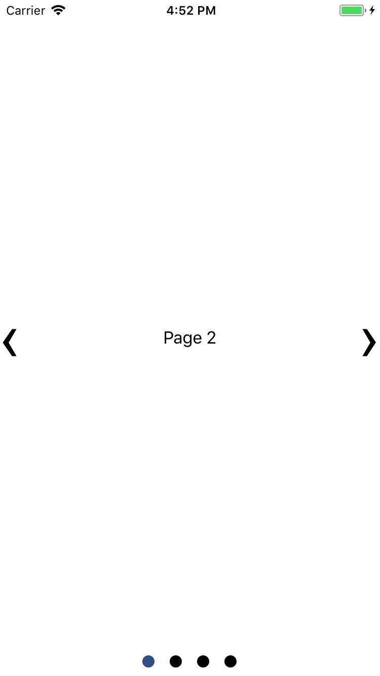 - if I start the app again to re-initialize the slide view and instead swipe from the first slide to the second, the second template is used, but the indicator stays positioned on the first page. See the attached screenshot. If I swipe again to the right the second template is used again and the indicator is finally showing the second page is selected. After this I can swipe left and right and all is good.