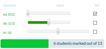 Third slider: the slider has not been used and the handle is sitting on the middle, clicking on the handle would select the value 3, and the left side of the handler would become green.