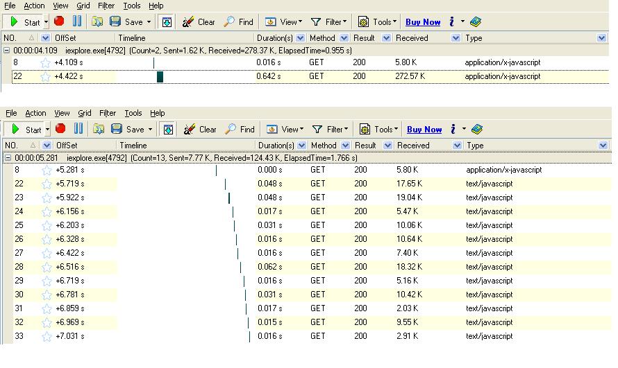Can you, please, record the two browsing sessions with FiddlerCap? We're probably missing something here and a complete log will help us a lot.