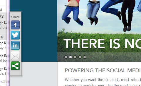 I would suggest taking a look at the following demo: http://demos.telerik.com/aspnet-ajax/socialshare/examples/sharebar/defaultcs.aspx. The concept, simpilfied, is to put the social share in a notification that will allow you to add more functionality to the popup. Otherwise you can simply wrap it in a div that has position: fixed set.