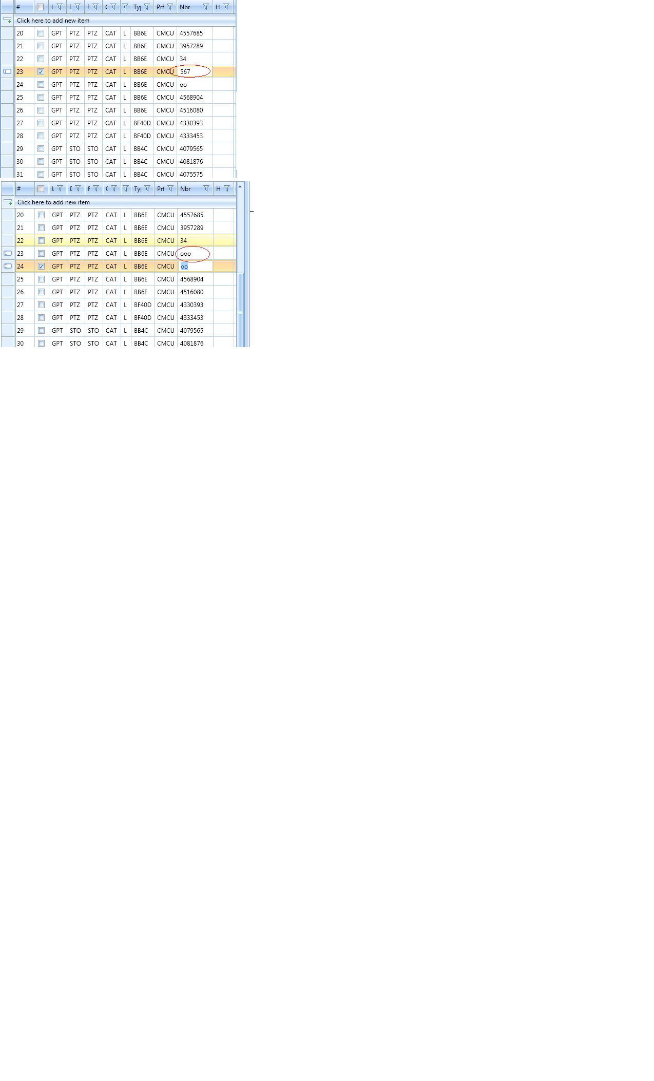 Some of the rows in the gridview is becoming readonly(Edited values are getting restored to older value when curser moved to next position) while editing(not all rows).