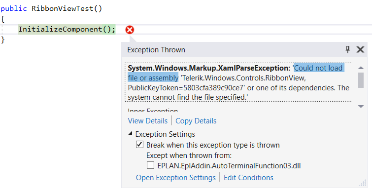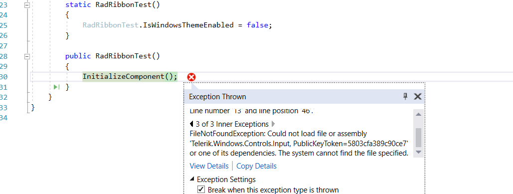 I just created a RadRibbonWindow in my application, each time I called this window,the program was interupted.