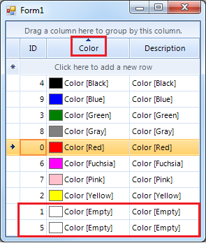 I have a GridView with some rows colored and some not. I would like to display the color rows on top and the none color rows on the bottom. Is there a way I can Sort by color?