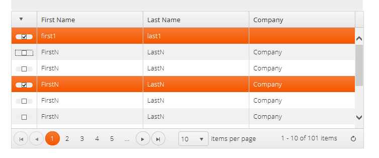 I'm using Kendo grid in a MVC project. The first column is a checkbox which defines by ClientTemplate: