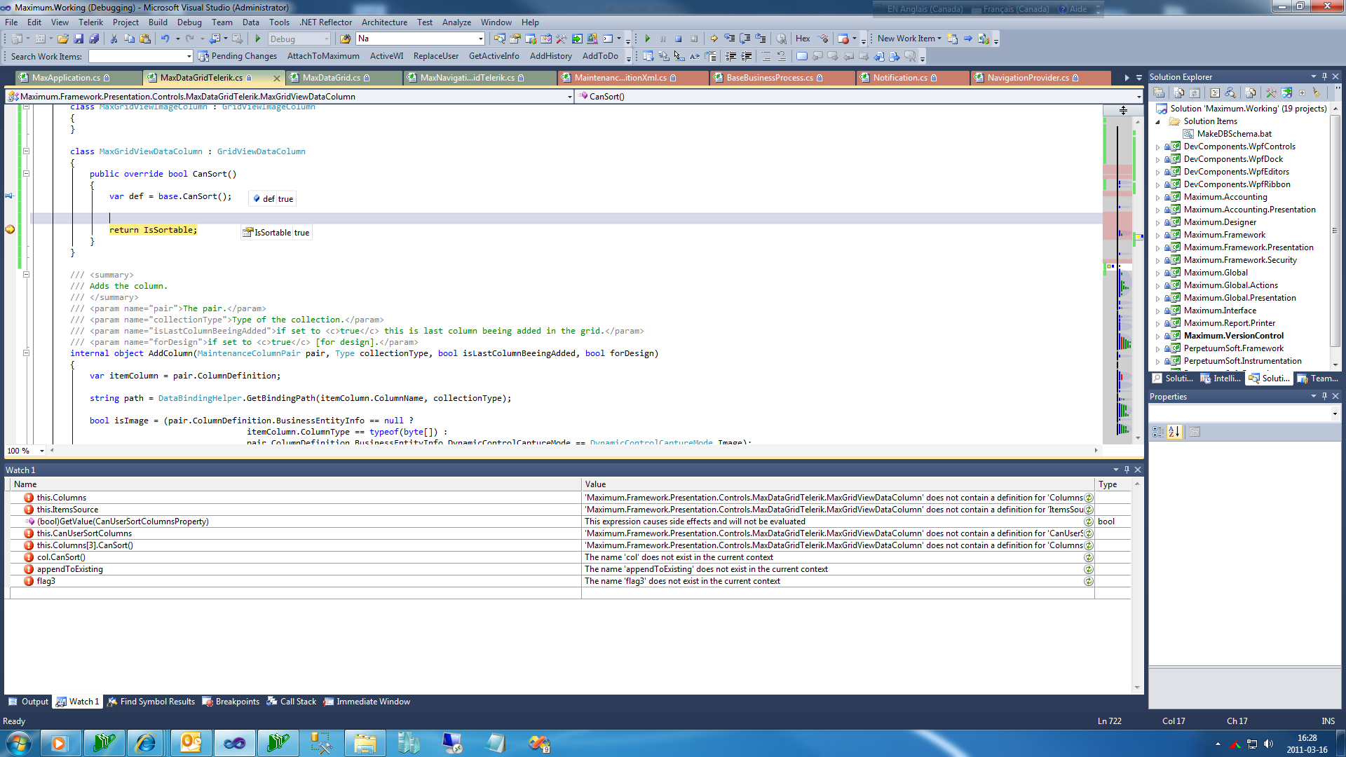 var itemColumn = pair.ColumnDefinition; string path = DataBindingHelper.GetBindingPath(itemColumn.ColumnName, collectionType); // ex: CustomerId bool isImage = (pair.ColumnDefinition.BusinessEntityInfo == null ? itemColumn.ColumnType == typeof(byte[]) : pair.ColumnDefinition.BusinessEntityInfo.DynamicControlCaptureMode == DynamicControlCaptureMode.Image); bool isNum = false; GridViewBoundColumnBase col; if (isImage) { col = new Telerik.Windows.Controls.GridViewImageColumn(); col.IsGroupable = false; col.IsSortable = false; col.IsFilterable = false; } else { isNum = TypeUtility.IsNumericType(itemColumn.ColumnType); col = new GridViewDataColumn(); col.IsGroupable = true; col.IsSortable = true; col.IsFilterable = true; col.ShowFieldFilters = false; // For traduction.. var fil = new MaxFilteringControl(itemColumn, pair.Process == null ? ApplicationBase.CurrentUser : pair.Process.User); col.FilteringControl = fil; } // For design perpose... MaxDataGridHelper.SetColumnDefinition(col, itemColumn); col.DataMemberBinding = new Binding(path) { Mode = BindingMode.OneWay }; col.Header = itemColumn.Label; if (itemColumn.Width > 0) col.Width = itemColumn.Width;