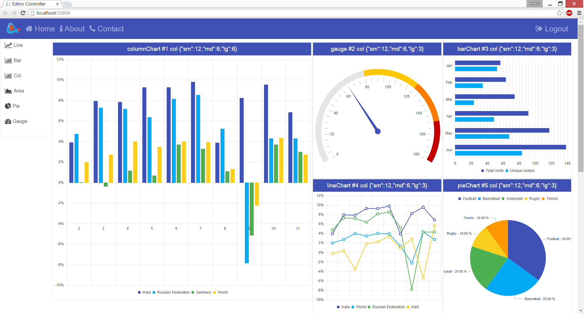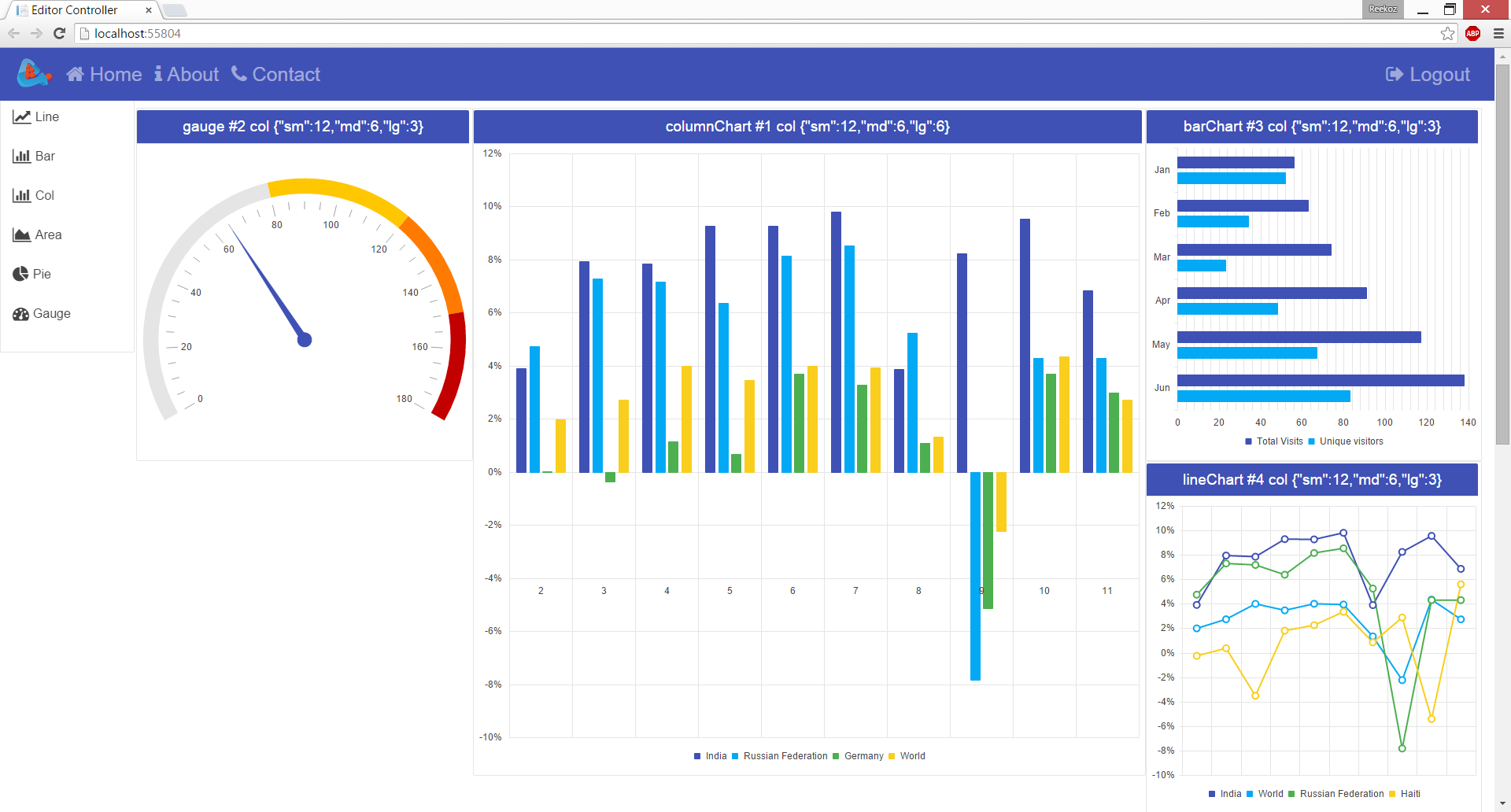 Every tile is a k-block and inside it is rendered a chart, the tiles ​have variable dimension: width is a fraction of 12 bootstrap columns, height is 400px or 800px. See the attached images to have an idea.