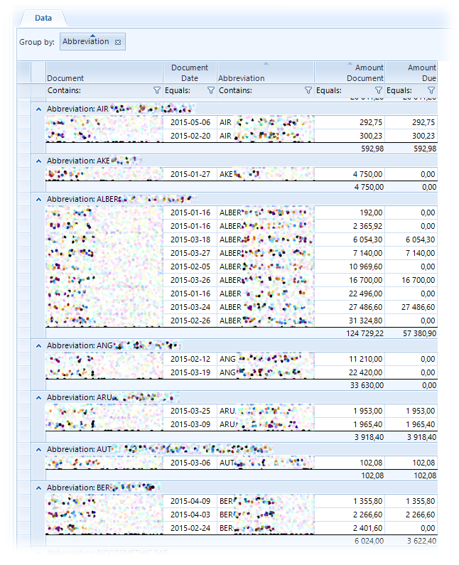 In the attached is a grid layout. I have grouping on column Abbreviation. There is also sorting on Document Amount column (from the lowest to the largest).