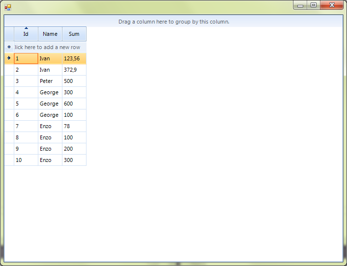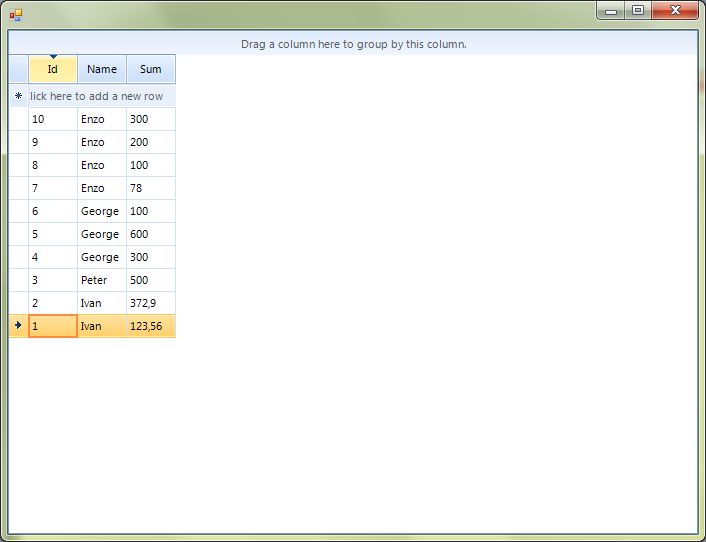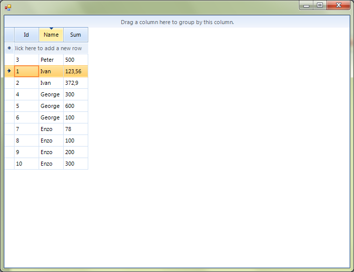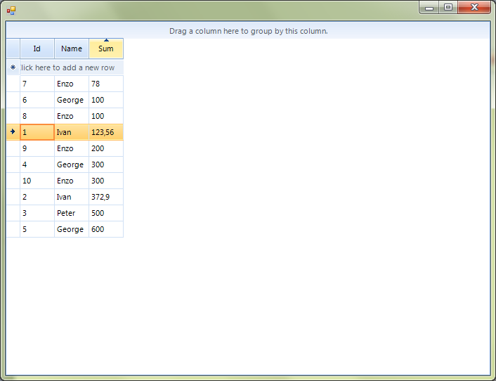 If I try to sort on the column, it doesn't work in any meaningful way, probably because the grid doesn't know how to sort the objects the column is databound to.