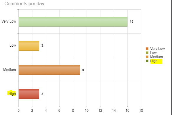 My bar chart is not picking up the sort order I am applying. I am returning Json with 4 categories - High, Medium, Low and Very Low, each returning a sort order to force the graph to display in that correct order. However, the graph renders in the wrong order. Please can you assist. I have attached a screenshot of what is rendered, code below. Everything else in my chart is working fine.