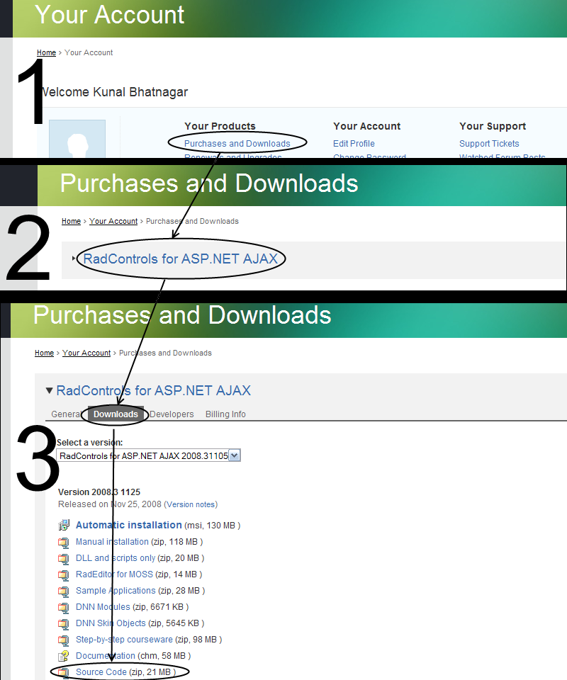 I want to download the source code for RadControls for ASP.NET AJAX. Can some body guide me?