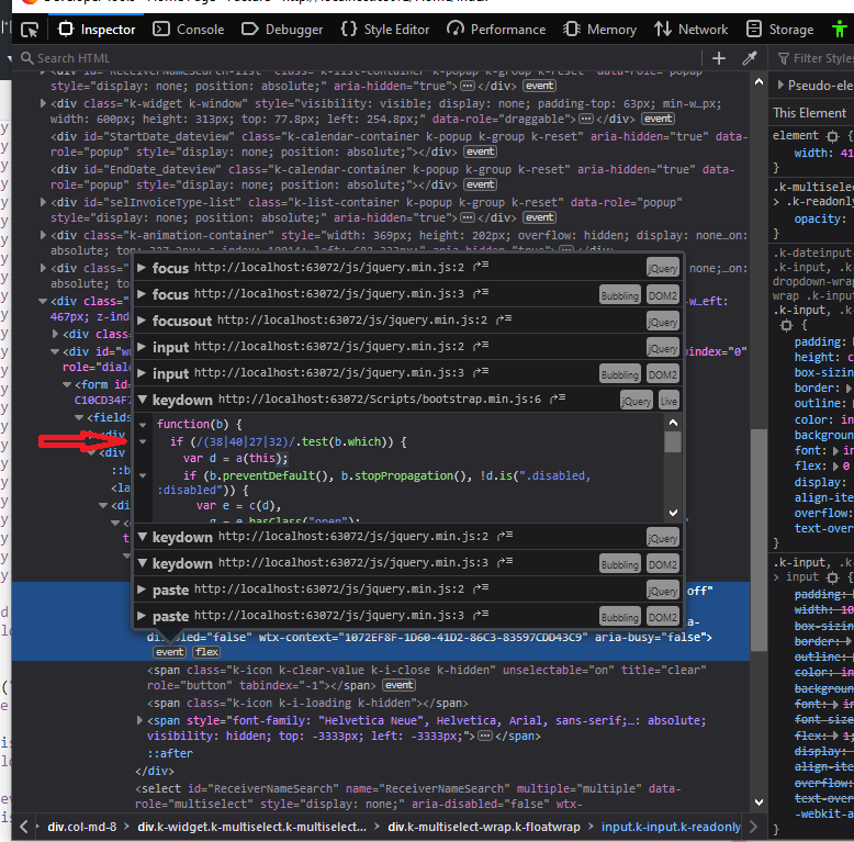<div class="k-widget k-multiselect k-multiselect-clearable" unselectable="on" title="" style=""><div class="k-multiselect-wrap k-floatwrap" role="listbox" unselectable="on"><ul unselectable="on" class="k-reset" id="ReceiverNameSearch_taglist"></ul><input class="k-input k-readonly" style="width: 41px;" accesskey="" autocomplete="disabled" role="listbox" title="" aria-expanded="false" aria-haspopup="listbox" aria-autocomplete="list" tabindex="0" aria-describedby="ReceiverNameSearch_taglist" aria-disabled="false"><span unselectable="on" class="k-icon k-clear-value k-i-close k-hidden" title="clear" role="button" tabindex="-1"></span><span class="k-icon k-i-loading k-hidden"></span><span style="font-family: "Helvetica Neue", Helvetica, Arial, sans-serif; font-size: 14px; font-stretch: 100%; font-style: normal; font-weight: 400; letter-spacing: normal; text-transform: none; line-height: 20px; position: absolute; visibility: hidden; top: -3333px; left: -3333px;"></span></div><select id="ReceiverNameSearch" name="ReceiverNameSearch" multiple="multiple" data-role="multiselect" aria-disabled="false" style="display: none;"></select></div>