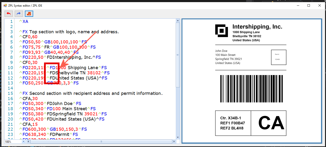 ^FD has to be also blue - this means 'FIELD DATA', means: text starts here