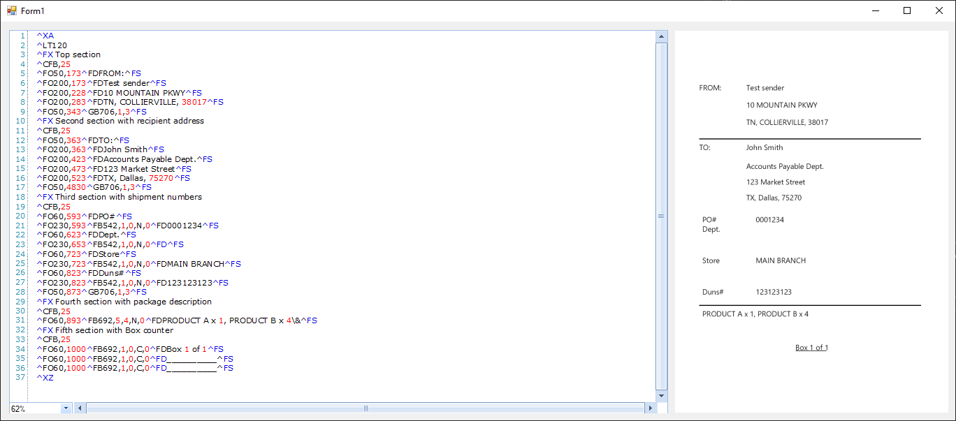 This language is ZPL, and this is how it looks like: