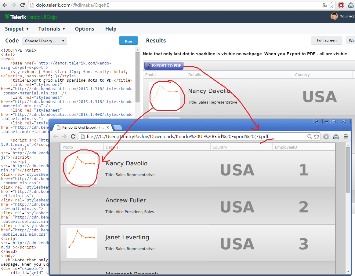 Please let me know how to keep sparkline dots hidden in exported PDF.
