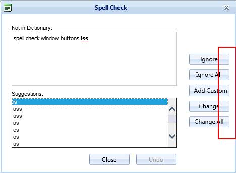 When I click spell check button, popup window opens. But the buttons ignore, ignore all etc is hidden and i'm not able to resize the window as well.