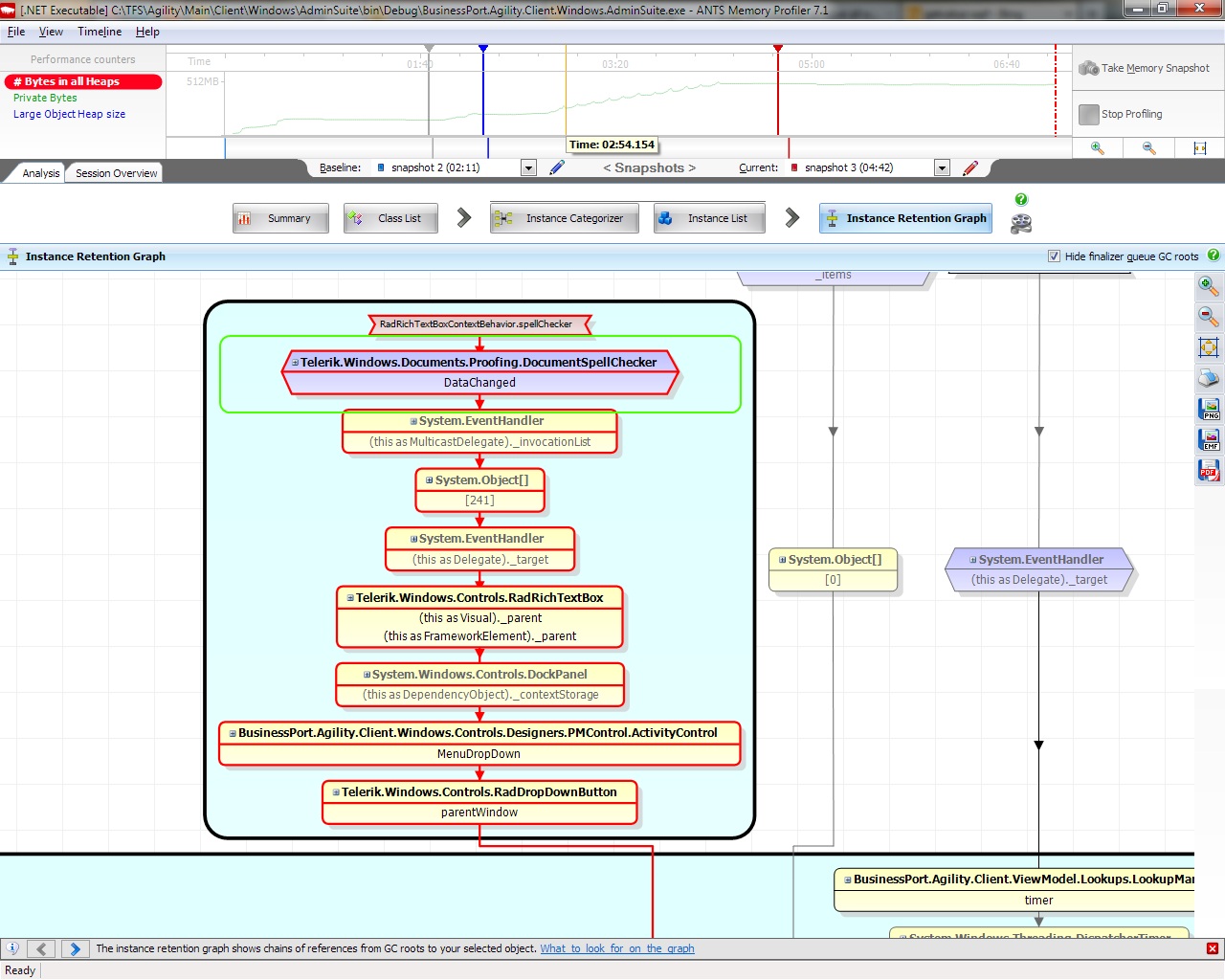 As this control is heavily used in our app, the problems quickly add up, and we've seen OutOfMemoryExceptions occur. The attached file shows the ANTS results. Notice the memory usage between the blue and red markers at the top - the rise in memory usage is attributed to repeatedly opening and closing the same item.