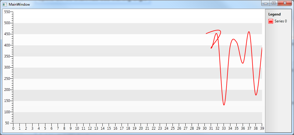 public MainWindow(){ InitializeComponent(); var data = new DataTable(); data.Columns.Add(new DataColumn { ColumnName = "X", DataType = typeof(int) }); data.Columns.Add(new DataColumn { ColumnName = "Y", DataType = typeof(double) }); var rnd = new Random(); for (var i = 0; i < 40; i++) { var row = data.NewRow(); row[0] = i; row[1] = (i < 30) ? (object)DBNull.Value : (double)rnd.Next(500); data.Rows.Add(row); } chart.ItemsSource = data; var seriesDefinition = new SplineSeriesDefinition(); seriesDefinition.ShowPointMarks = false; seriesDefinition.ShowItemLabels = false; seriesDefinition.EmptyPointBehavior = EmptyPointBehavior.Gap; // Gap, Drop, Zero var mapping = new SeriesMapping(); mapping.SeriesDefinition = seriesDefinition; mapping.SeriesDefinition.Appearance.Stroke = new SolidColorBrush(Colors.Red); mapping.ItemMappings.Add(new ItemMapping(data.Columns[0].ColumnName, DataPointMember.XCategory) { FieldType = data.Columns[0].DataType }); mapping.ItemMappings.Add(new ItemMapping(data.Columns[1].ColumnName, DataPointMember.YValue) { FieldType = data.Columns[1].DataType }); chart.SeriesMappings.Add(mapping);}