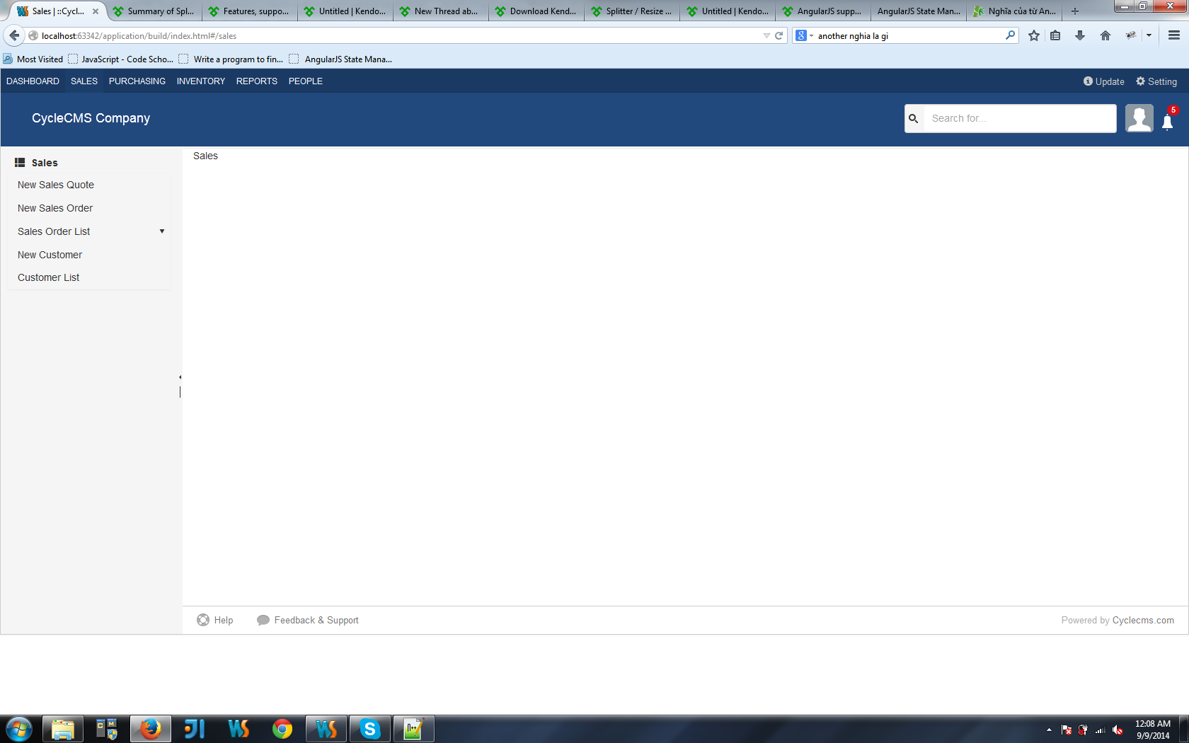 I want to create layout with splitter and angularjs like this http://dojo.telerik.com/aHab.I dont know how to use more splitter with k-panes of directive splitter.And how to add and remove left pane when click menu top,because some menu have left menu and another don't have.I used ui.router and check $state to determine when left menu show or not.I've worked with trial version and going to buy license in this week.