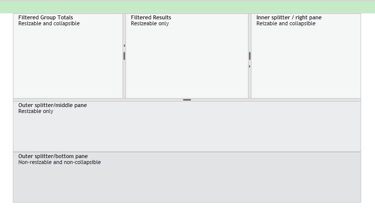 Unfortunately the splitter just displays all the panels scrunched up and collapsed on itself with contents all overlaid (see Attachment 1). If however I resize the browser or just click F12 (in IE) to display the developer toolbar the splitter then magically sorts itself out and displays what I'd expected the first time (see Attachment 2).