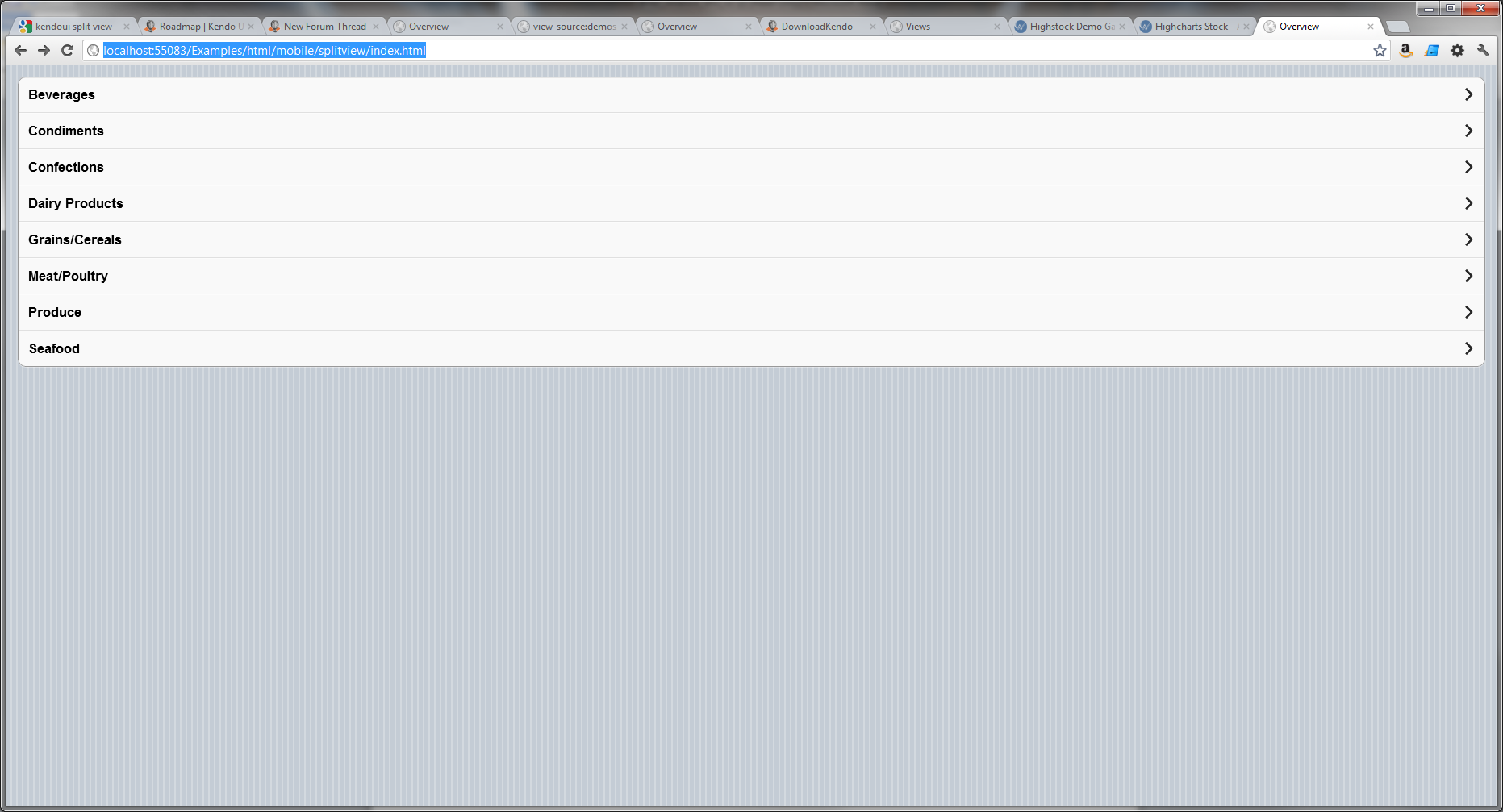 I downloaded the examples from the website. The SplitView demo does not seem to be working (tested in Chrome of Firefox). It is only displaying the left hand panel and not the right. Please see the attached screen shot. Have tried to copy the example online but gives the same problem.
