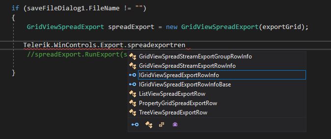 I understand what you are saying but I still can not find SpreadExportRenderer class in WinControls.Export. Have you tried to look? Please see the attached screenshot. Am I doing something wrong?