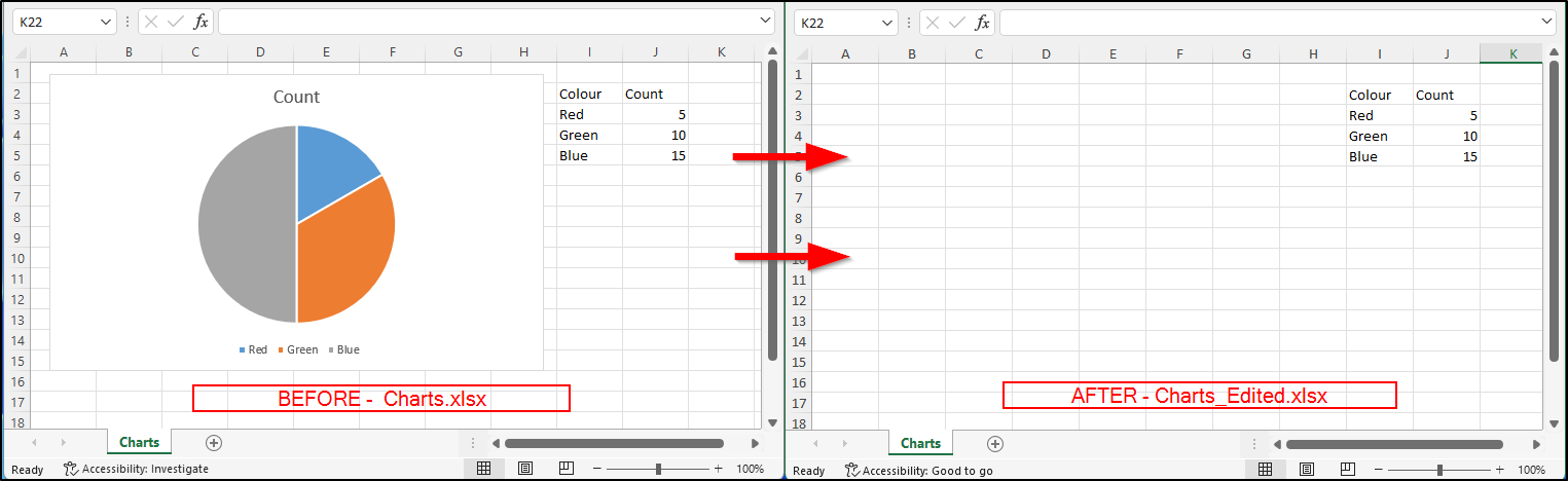 I'm having an issue where I have some code that opens an existing Excel file, adds some data then saves the file. When this runs all the charts in the original Excel file disappear.
