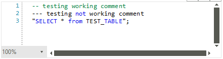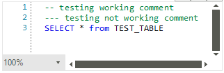 First problem is when any special characters are followed by -- other than a space, it is not treated as comment.