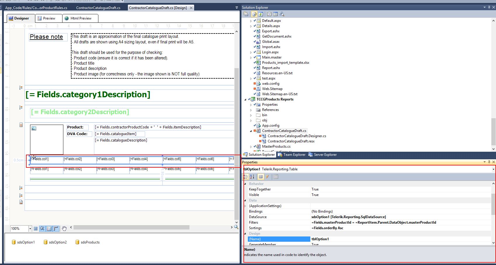 I've got a report, with the Table items inside the section. I use this to show child data.