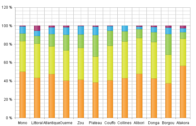 | Borgou | 4.92 | 0.08 | 43.52 | 9.51 | 0.49 | 0 | 58.52 |