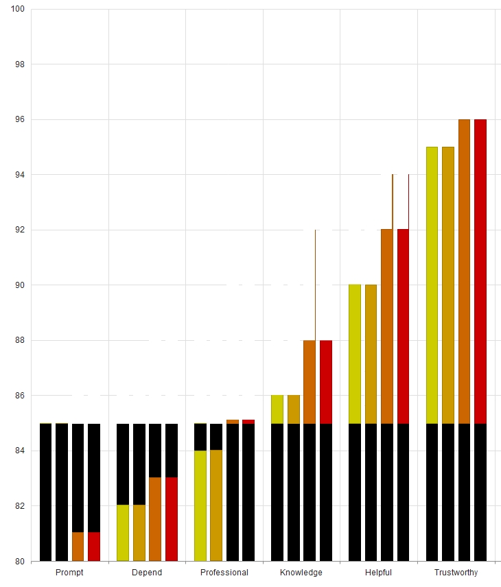 Is there is any way for a stack chart to let every stacked bar start from 0 in Axis?, and display in front the bar with less value overlapped with the one with greater value on the back?