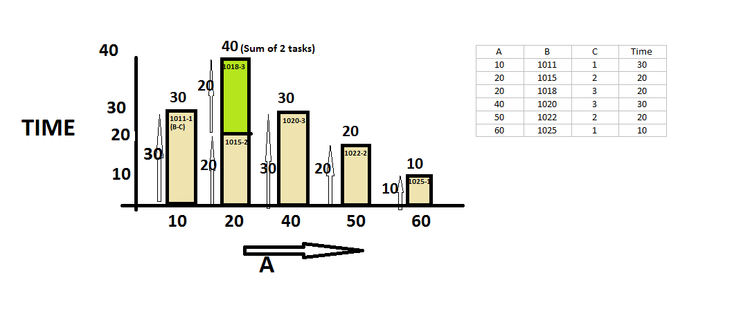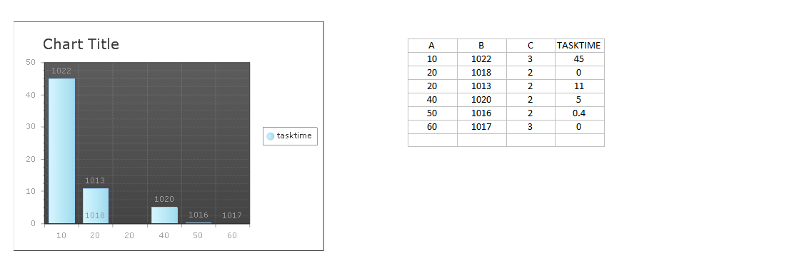 I have 4 columns in my table. With Column "A" as X-axis which is to be grouped and "TaskTime" as Y-axis.