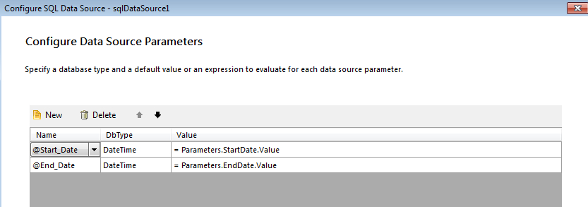 I am trying to set up a Start Date / End Date Parameter for a report based on the following example but I can't get it to work.