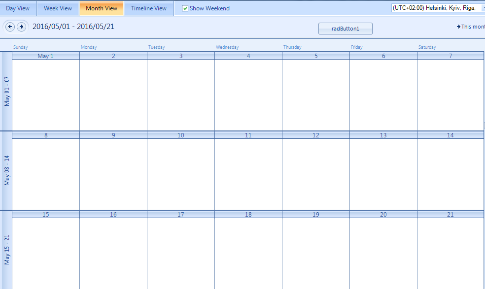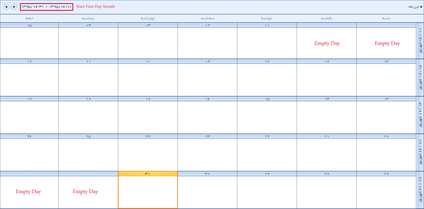 Although I choose the first as the begining of the month(Example: 2016/05/01), because of the first day of the week dose not align on the first day of the week so then the result Scheduler MonthView is wrong