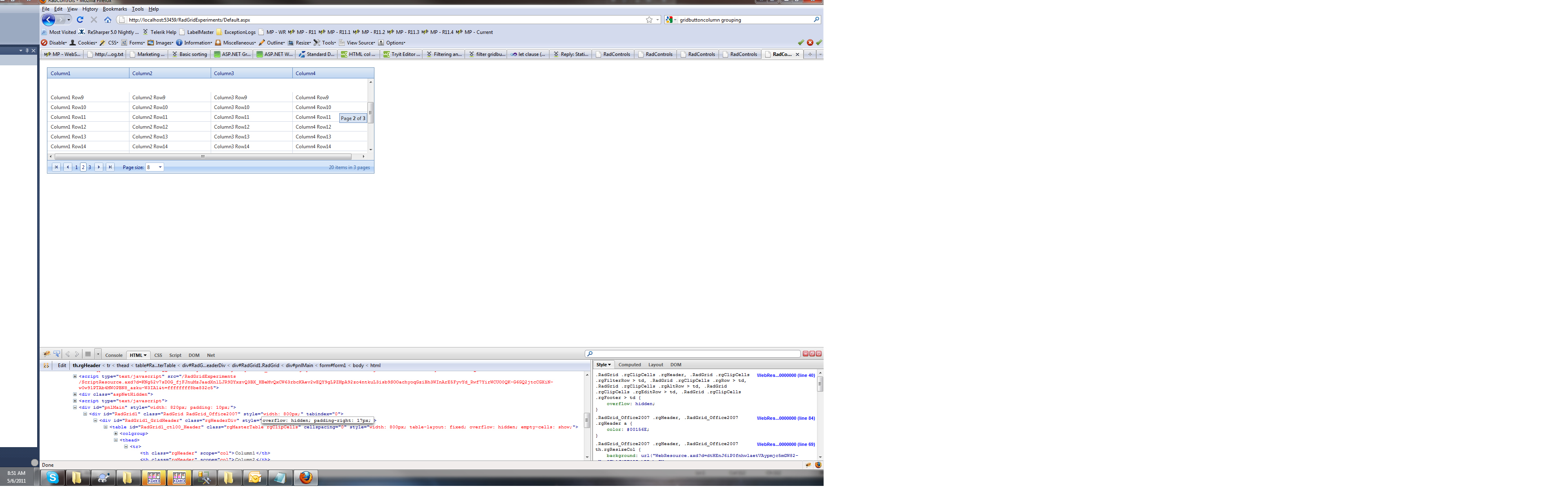 I would like to note that even when I cancel all this styling and am working on the straight Office2007 skin, I still get that little square in the top corner that I think should not be the grid background color. It's even more noticeable in that case, actually, since the grid header borders don't completely surround the header cells. (see unstyledgrid.png)