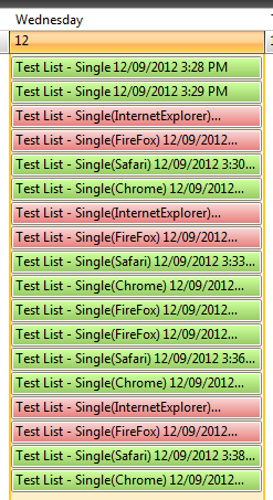 I have attached a screenshot of the timeline view of the Test List - the first two tests are FF only, and you can clearly see that each named browser execution afterwards has FF as failing if it is preceded by IE.